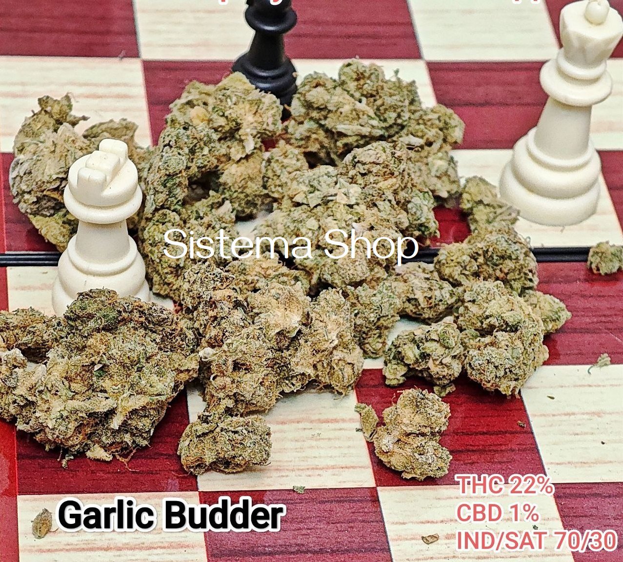 |  Шишки Garlic Budder 1g Цена: 697 грн. Шишки Garlic Budder - гидрапоника, сенсими́лья, THC 22%, GBD 1%, гибрид - indica 70% sativa 30% |