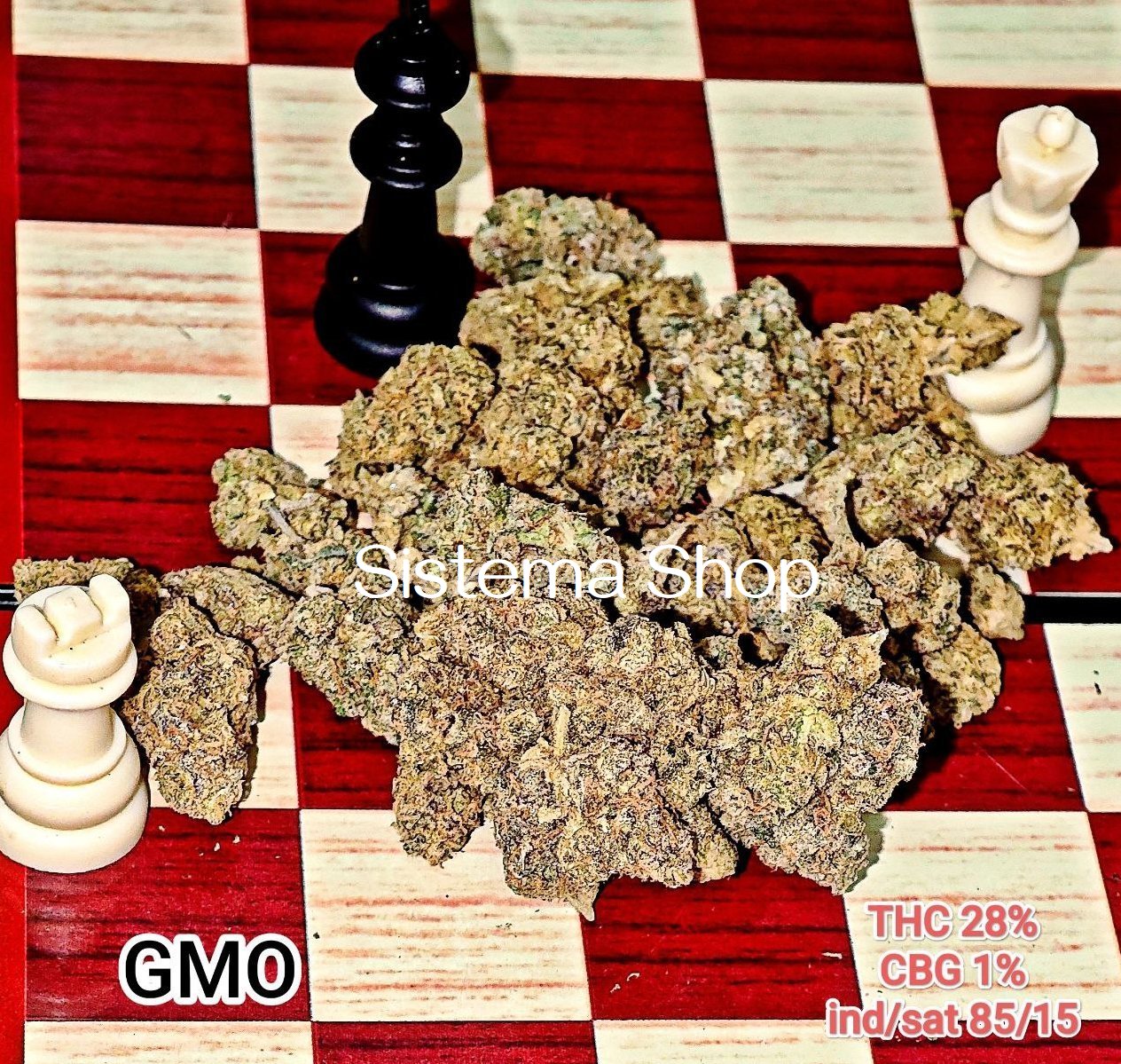 Шишки GMO 1g Цена: 697 грн. Шишки GMO - гидрапоника, сенсими́лья, THC 28%, GBG 1%, гибрид - indica 85% sativa 15%